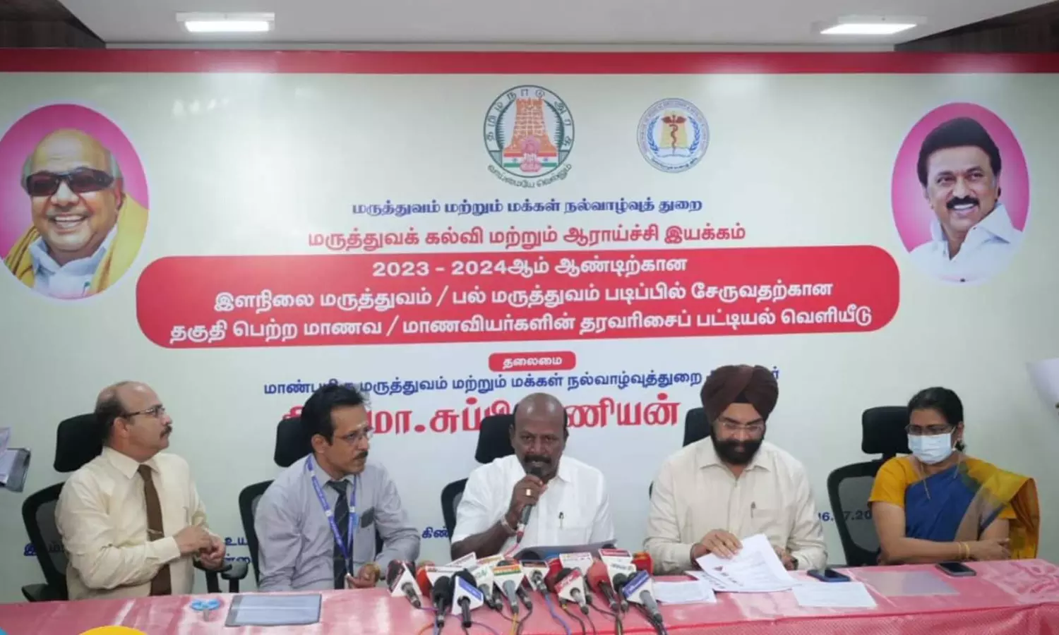 Health minister Ma Subramanian released the rank list for medical and dental courses admission