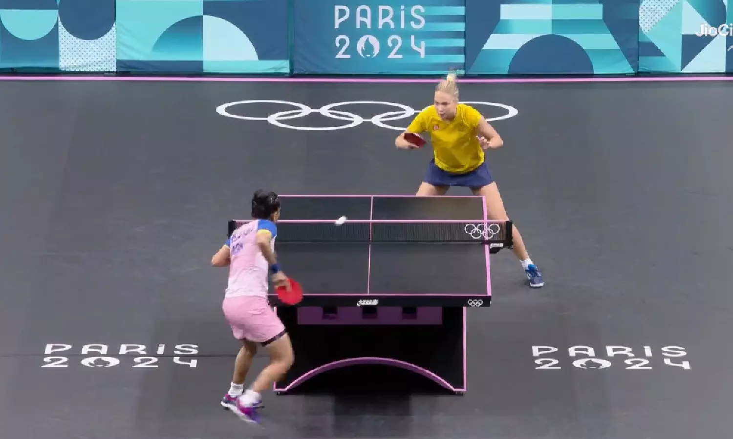 Sreeja leading the match against Kallberg of Sweden 8-2