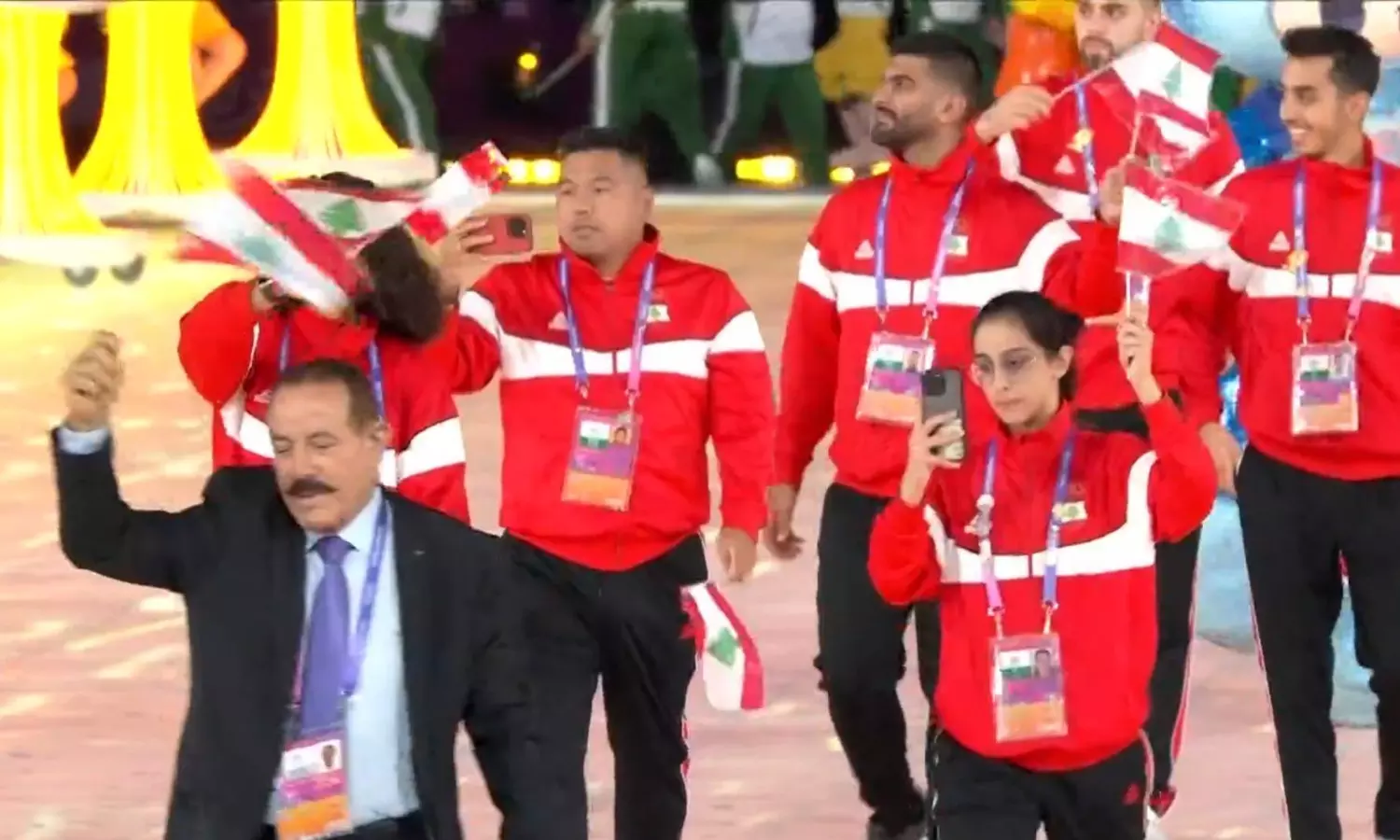 The Lebanese contingent make their entry ... Asian Games 2023 Opening ceremony live: Asian Games declared open