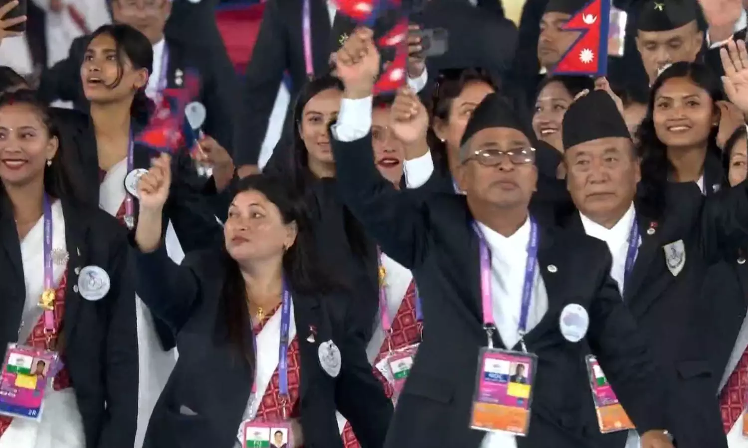 Nepali contigent clad in sarees and pajamas enters... ... Asian Games 2023 Opening ceremony live: Asian Games declared open