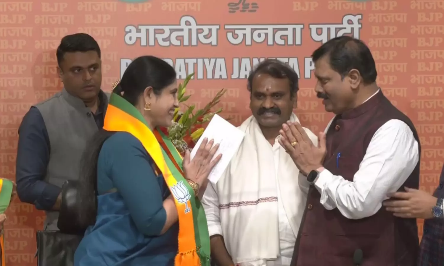 "I have joined the BJP today because I was attracted by the works and people welfare schemes such as 33 per cent reservation for women by PM Modi. The leadership of Modiji is important to this country. In Tamil Nadu, I will work to make the BJP stronger under the leadership of Annamalai ji," she added.