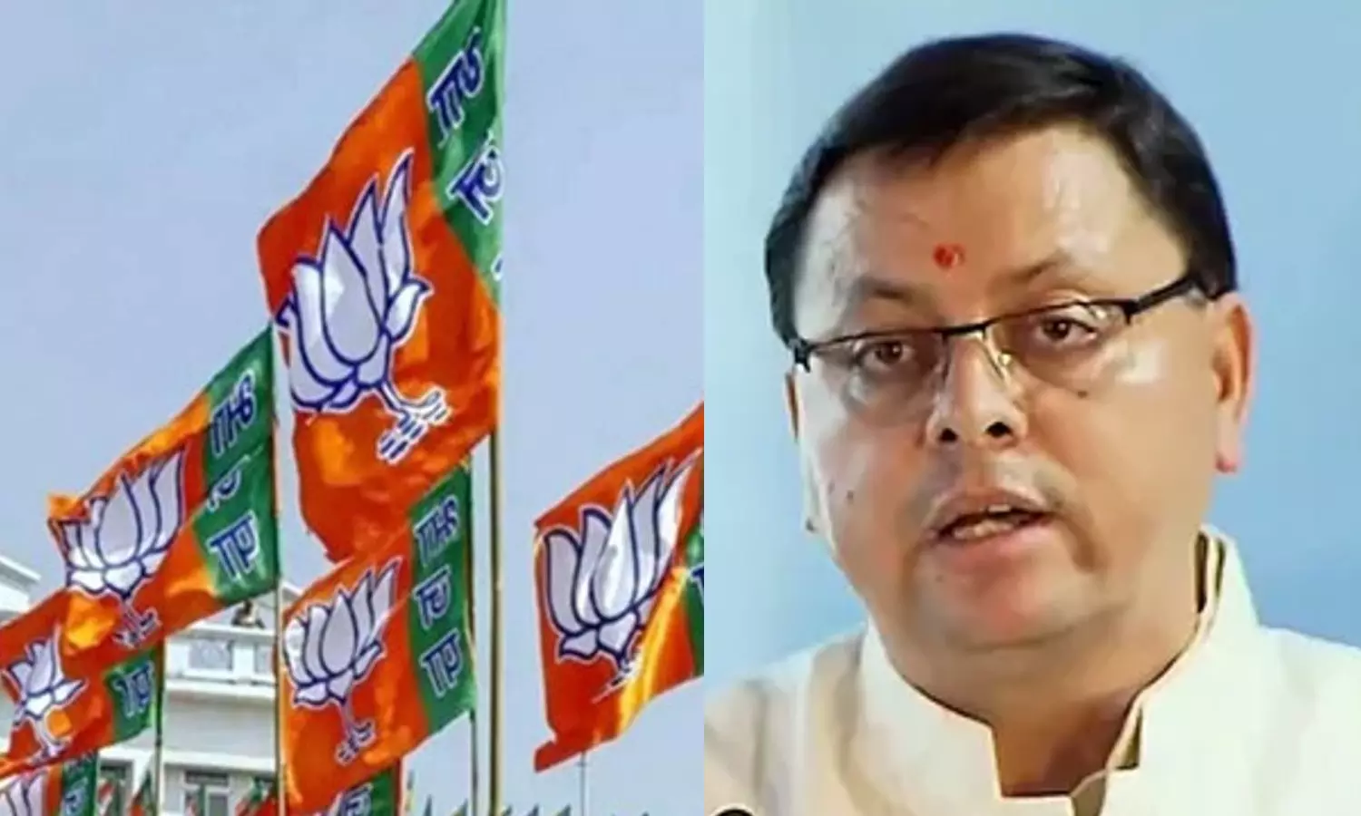 Pushkar Singh Dhami (right)