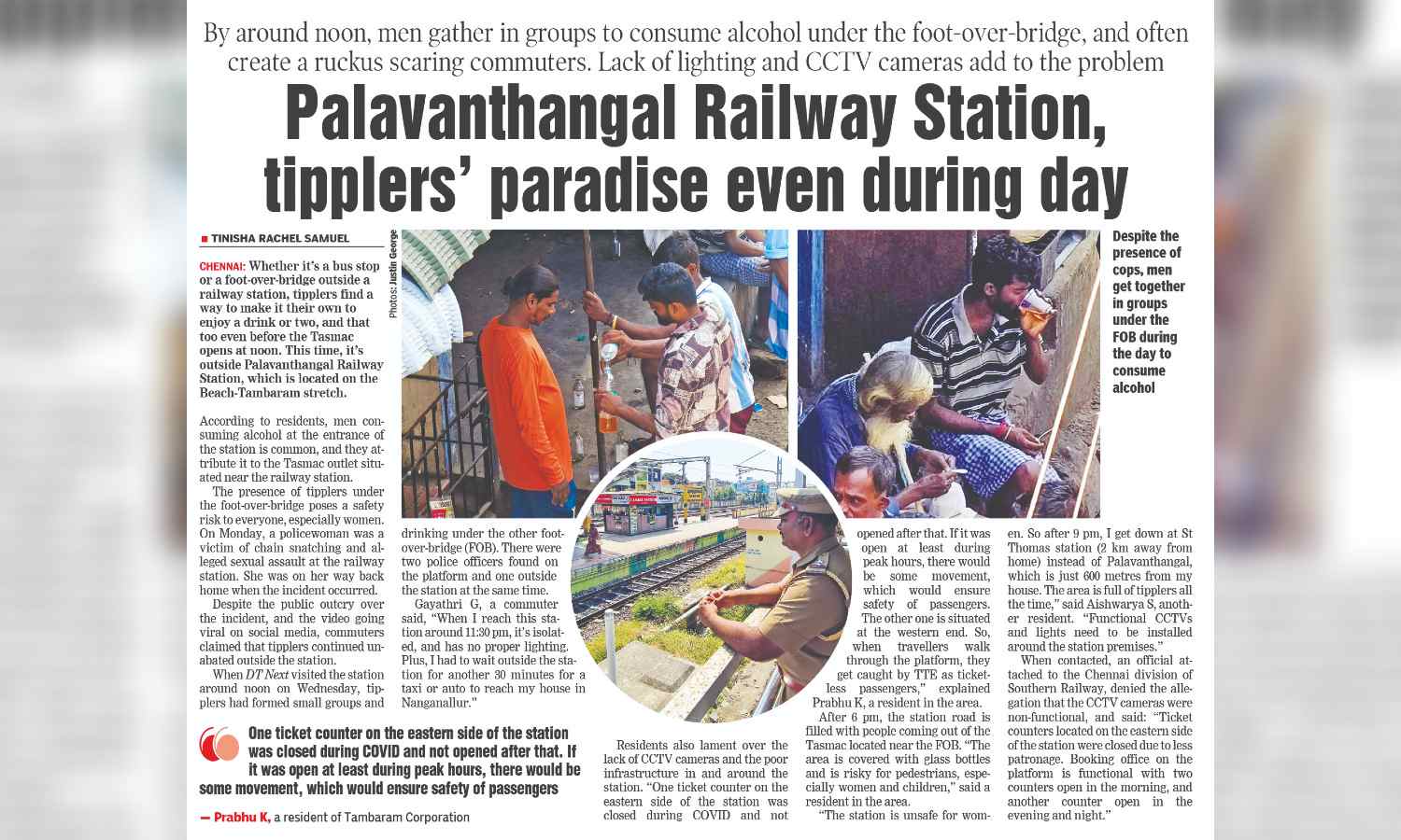 DT Next carried a story mentioning the safety hazards in the Palavanthangal railway station following the chain snatching incident and alleged sexual assault of a policewoman at the station.