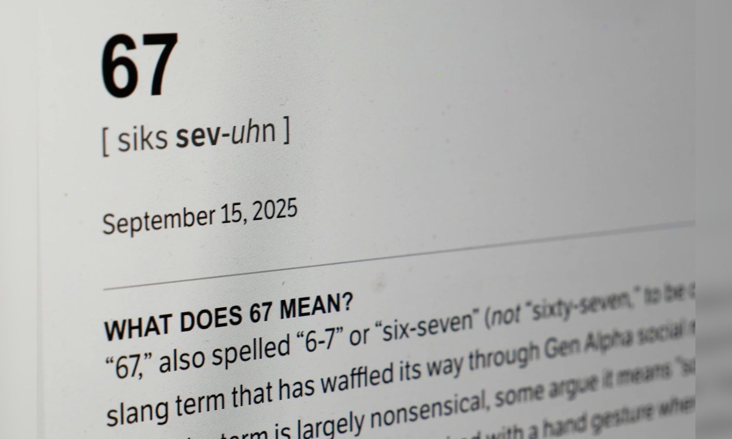 Dictionary.com's word of the year isn't even really a word. It's the viral term “6-7” that kids and teenagers can't stop repeating and laughing about and parents and teachers can't make any sense of.