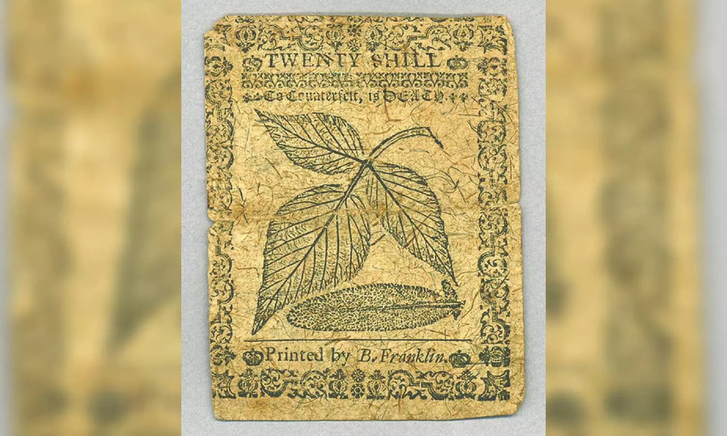 During his printing career, Franklin produced a stream of baroque, often beautiful money. He created a copper plate of a sage leaf to print on money to foil counterfeiters: The intricate pattern of veins could not easily be imitated. He influenced a number of other printers and experimented with producing new paper and concocting inks.