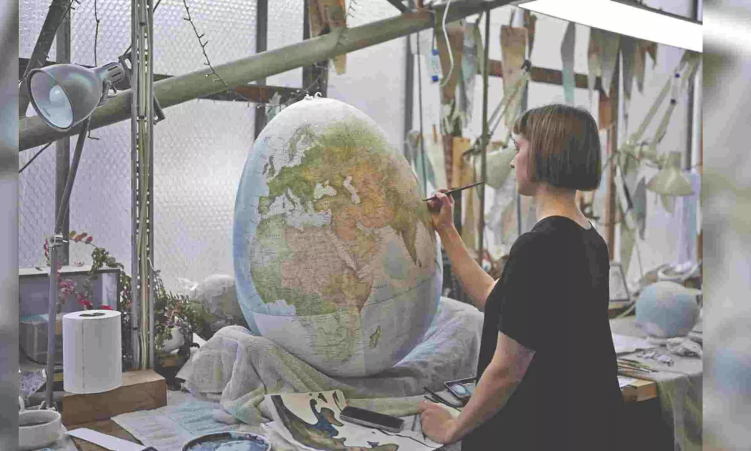 “You don’t go onto Google Earth to get inspired,” Bellerby says in his airy studio, surrounded by dozens of globes in various languages and states of completion. “A globe is very much something that connects you to the planet that we live on.” Or, as Scottish-born American explorer John Muir wrote in 1915: “When we contemplate the whole globe as one great dewdrop, striped and dotted with continents and islands, flying through space with other stars all singing and shining together as one, the whole universe appears as an infinite storm of beauty.”