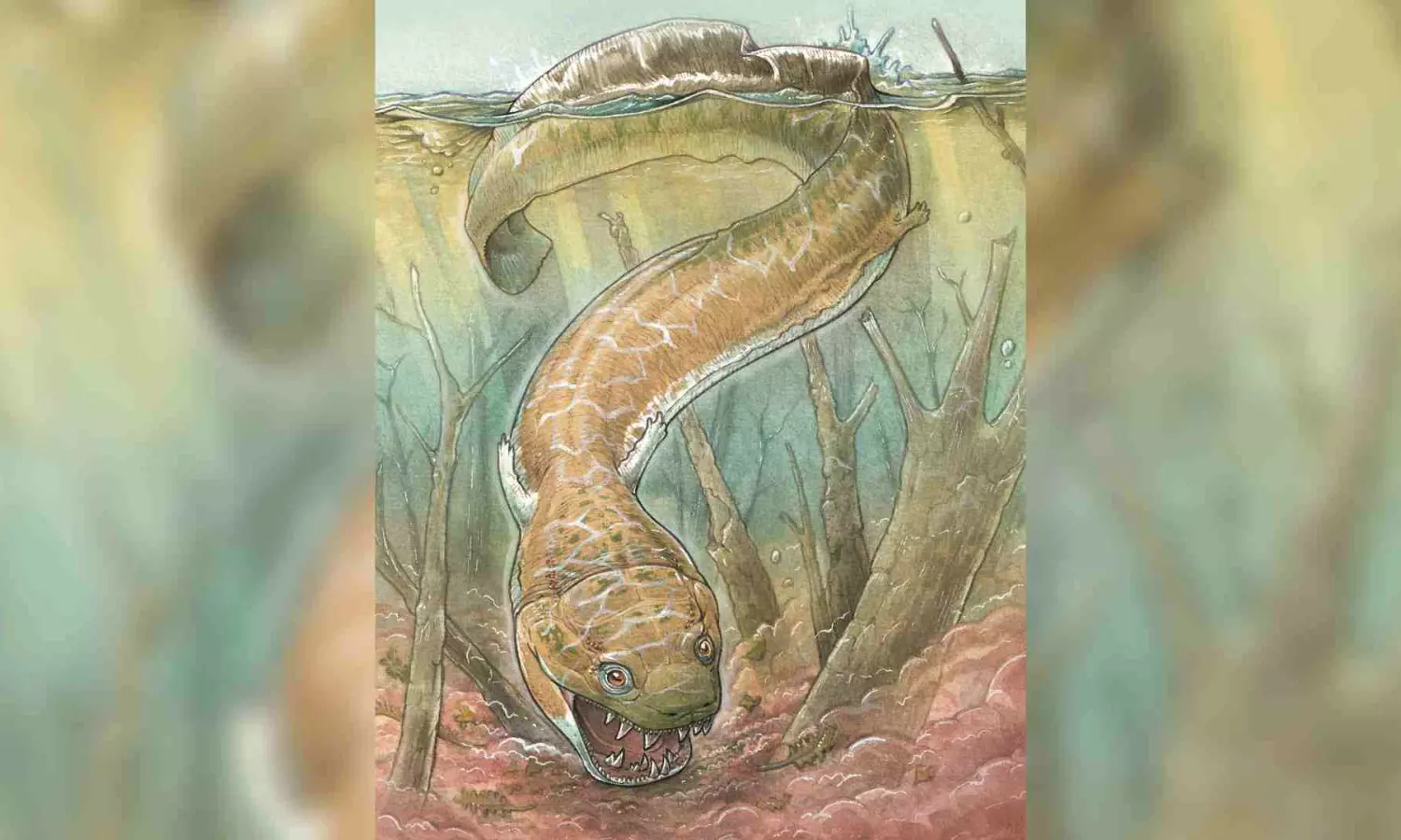 Some 280 million years ago, a large predator glided through the chilly waters of a supercontinent in the Southern Hemisphere. The eight-foot-long hunter had tiny limbs, an eel-like body and a flat head full of jutting fangs. And according to existing ideas about vertebrate evolution, it shouldn’t have existed.