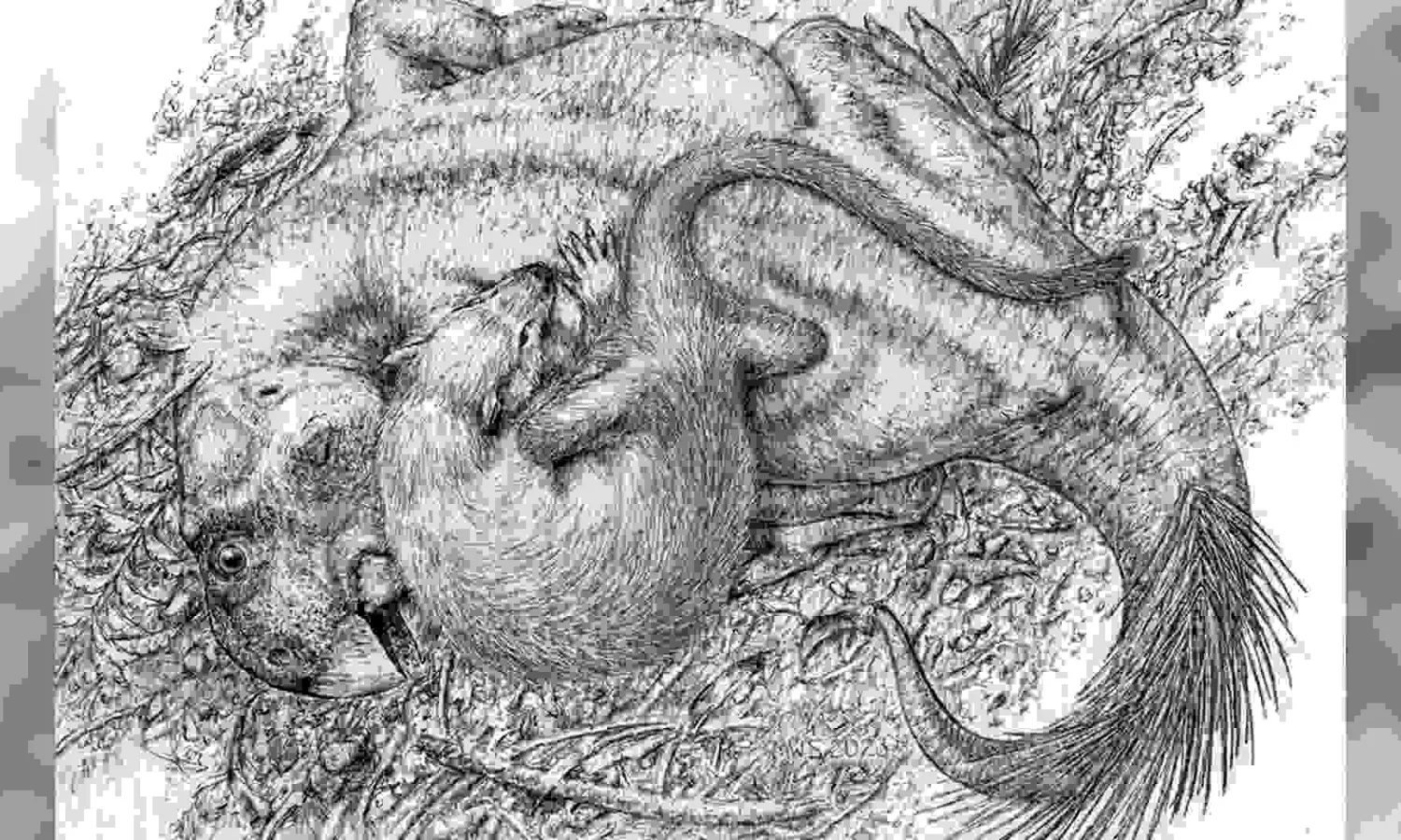 This could be the case with a newly described fossil of a badger-like mammal and a Labrador retriever-sized dinosaur, locked in what appears to be an eternal brawl.