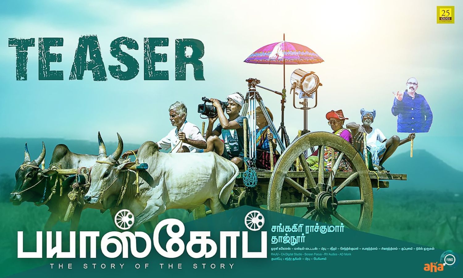 'Bioscope' tells the lively and humorous real-life story of a group of villagers, who, with no knowledge of cinema, decide to make a film. Sathyaraj and Cheran play cameo roles in this flick, while Sankagiri Rajkumar and Sankagiri Manickam appear in significant roles. Notably, the characters in this true story are portrayed by the real-life people who lived through these events, adding a touch of authenticity to the film.