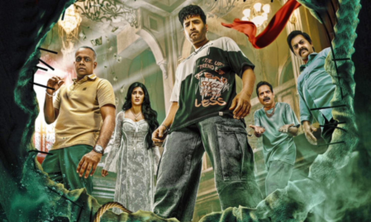 Santhanam goes to the theatre that appears desolate. On entering its premises, he is teleported to the story of the film that is being screened.