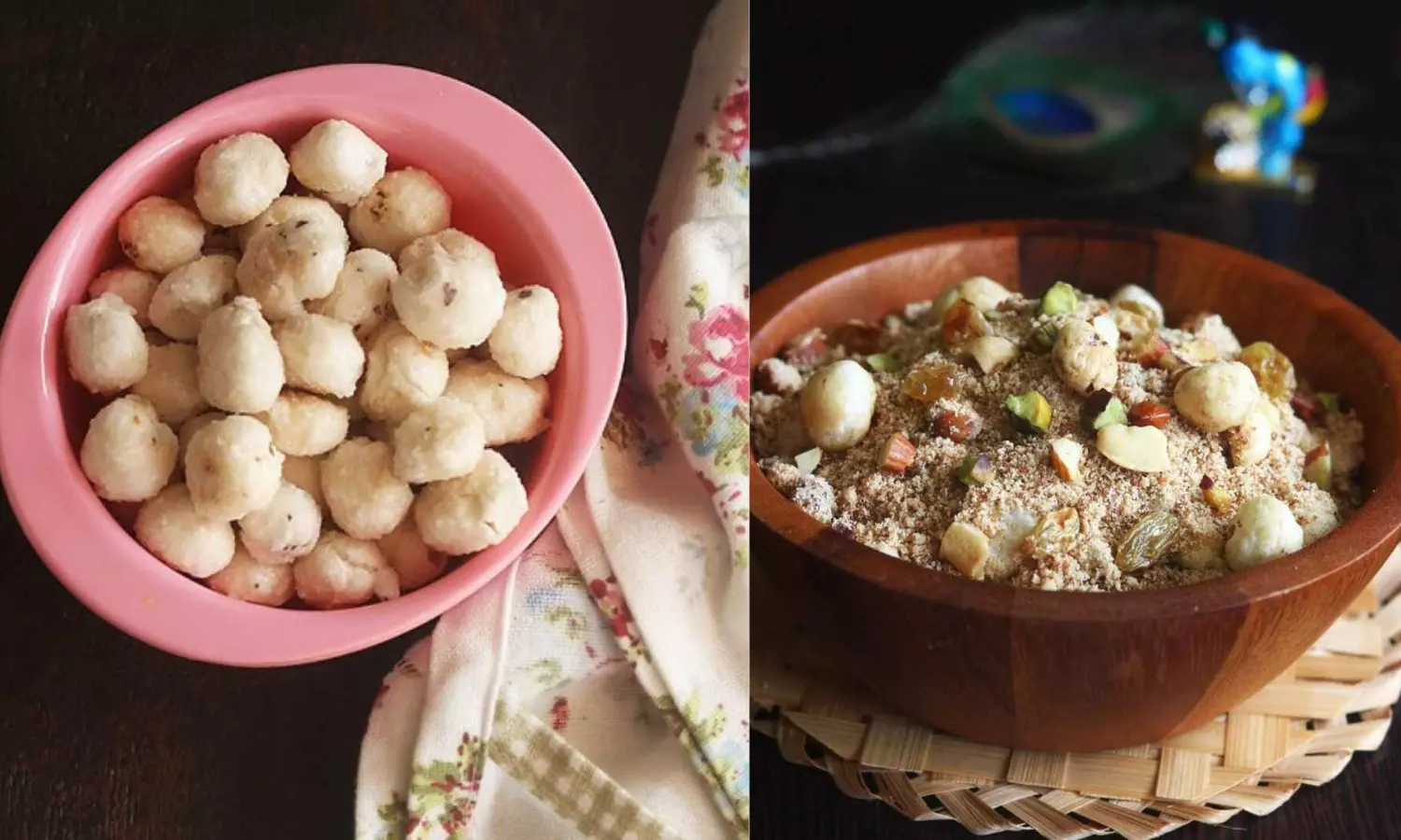In a pan, roast the makhana on low flame, stirring occasionally. To test if they're done, pop one or two in your mouth; they should be crispy. If not, roast them a bit longer. Set aside.