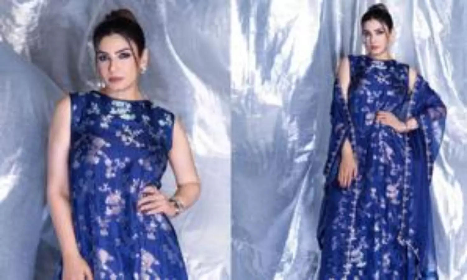 Raveena Tandon experiments with style in blue brocade gown