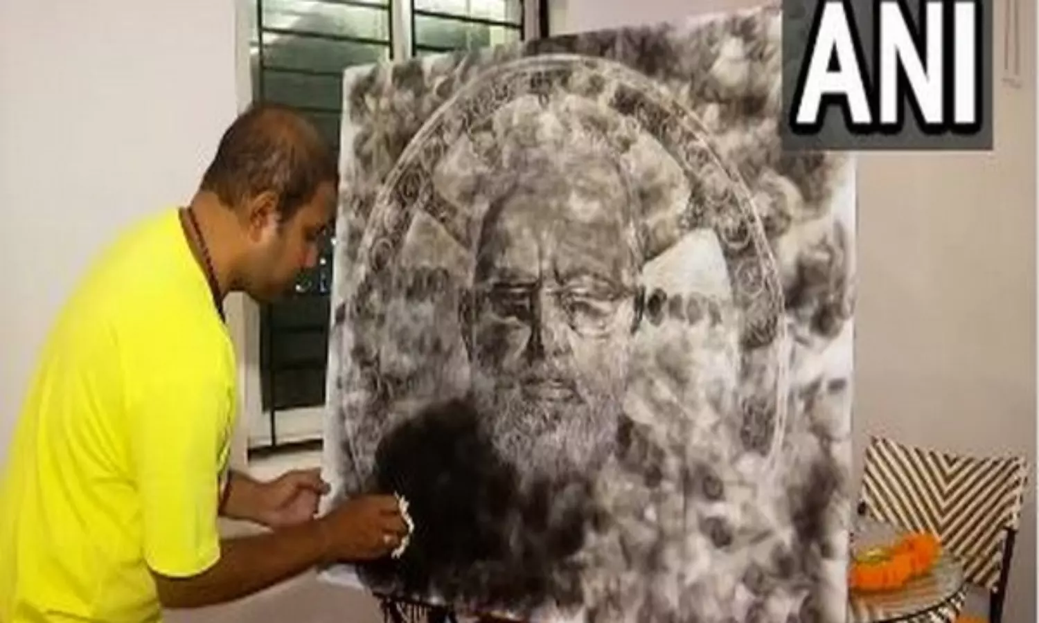 Smoke artist Deepak Biswal with portrait of PM Narendra Modi (Photo: ANI)