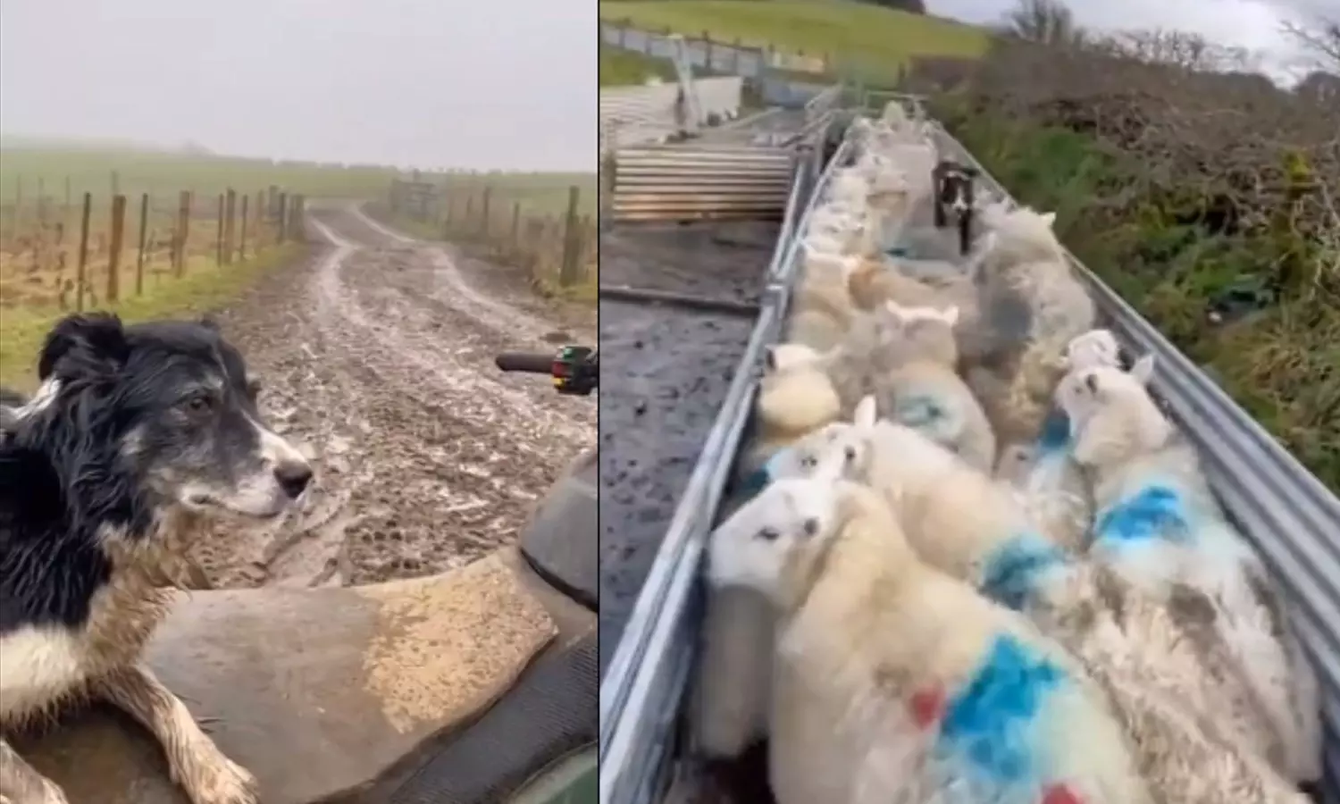 In the video, it is seen he directs the sheeps to position themselves and the dog can be seen running and jumping.