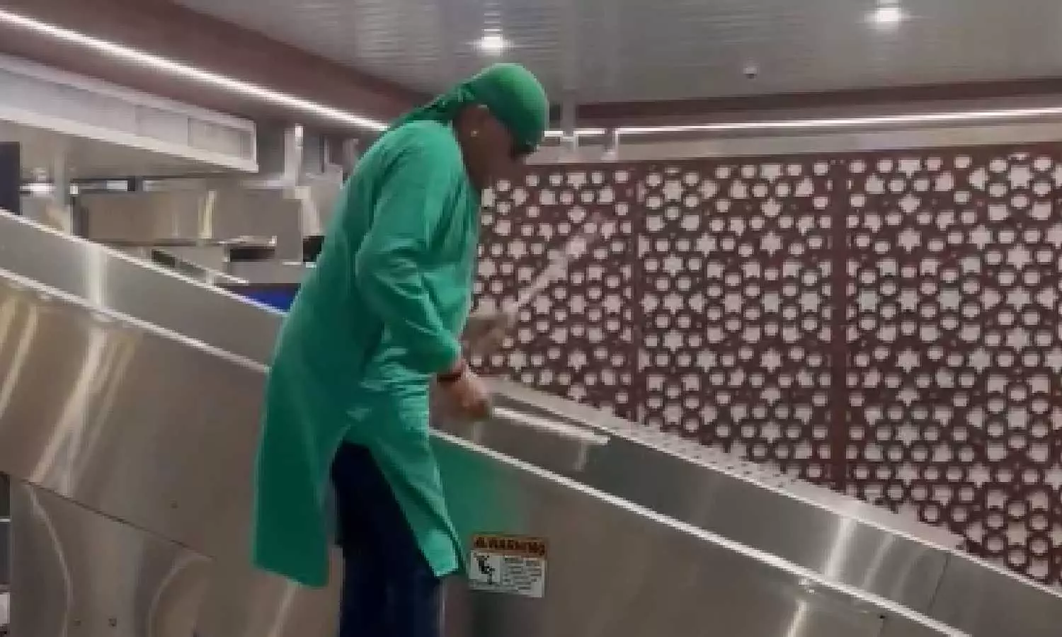 In the now-viral clip, Sivamani played AR Rahman’s ‘Humma Humma’ song on the railings of the conveyer belt.