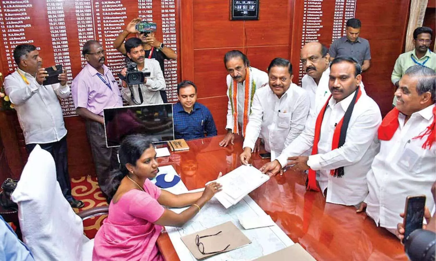 DMK leader A Raja filing his nomination to contest from The Nilgiris constituency on Wednesday