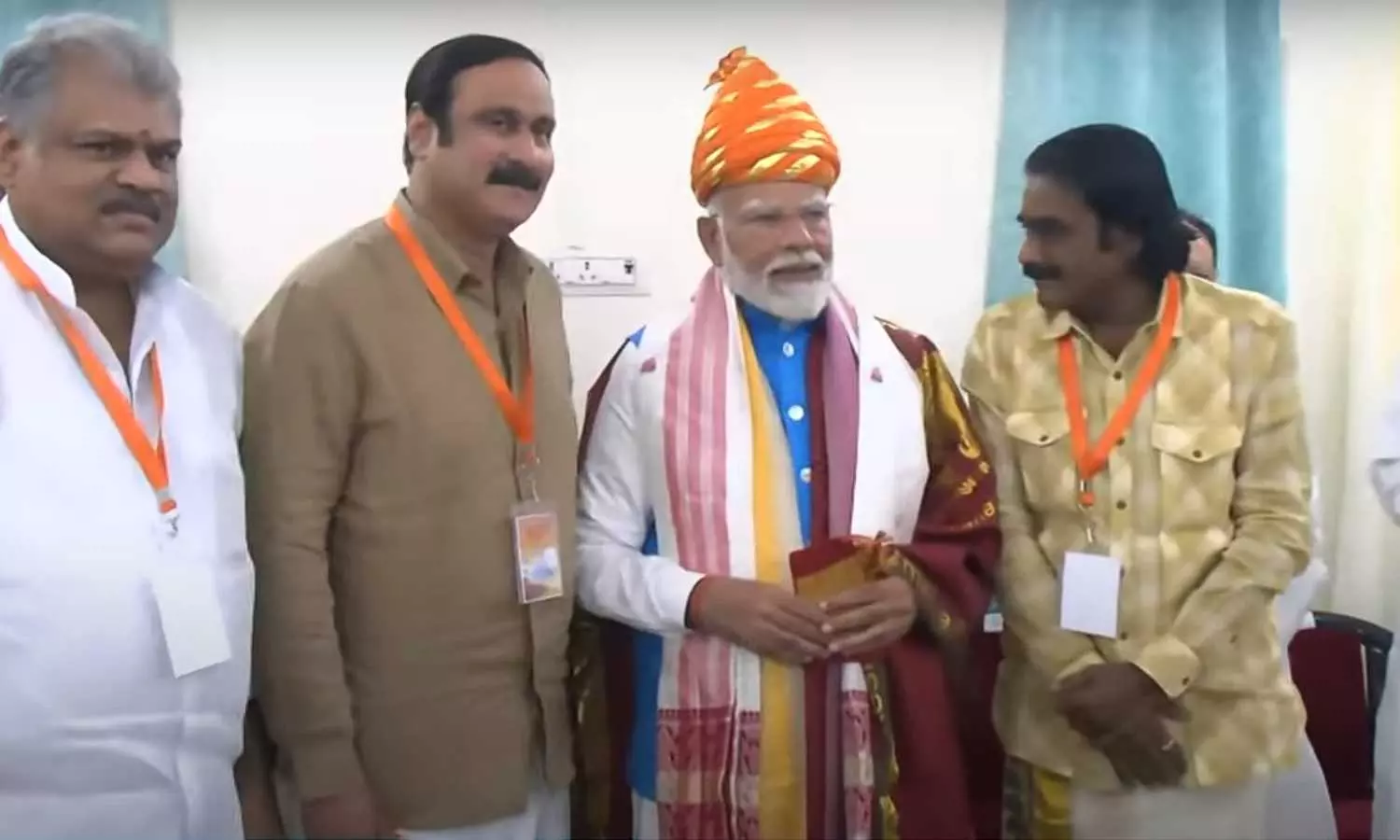 CHENNAI: NDA leaders from Tamil Nadu, GK Vasan and Anbumani Ramadoss on Tuesday witnessed Prime Minister Narendra Modi's nomination filing event at Varanasi.