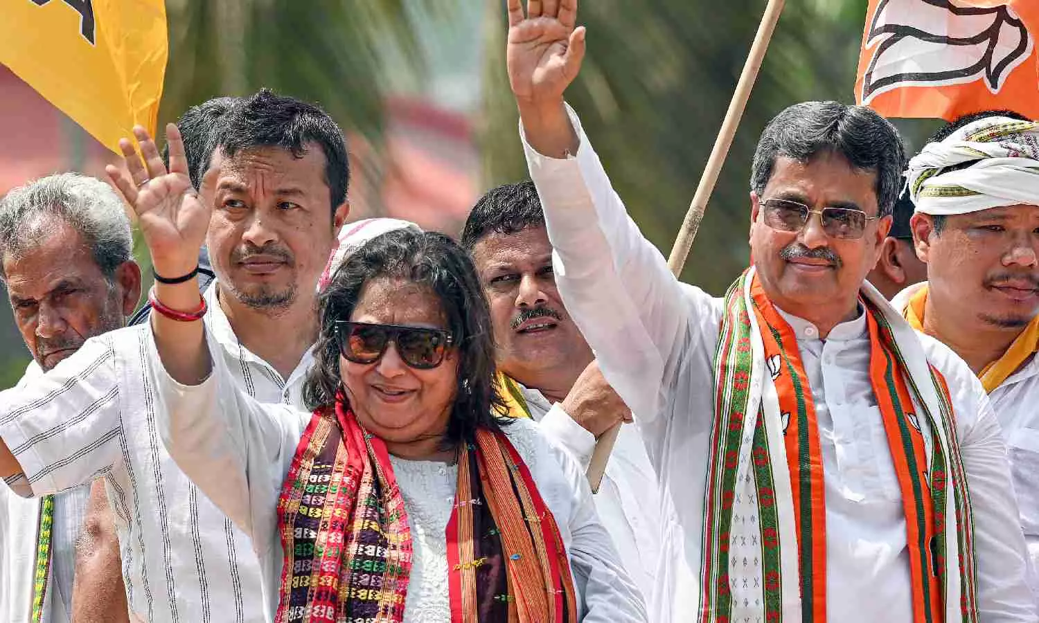 Tripura Chief Minister Manik Saha with candidate from East Tripura Kriti Singh Debbarma (PTI)