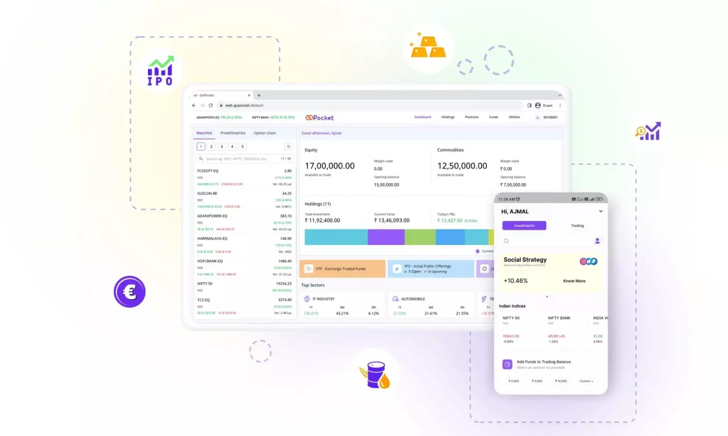 Backed by the experts of Sky Commodities, GoPocket showcases real-time market analysis and customised recommendations to invest in stocks and helps manage investment portfolios online.