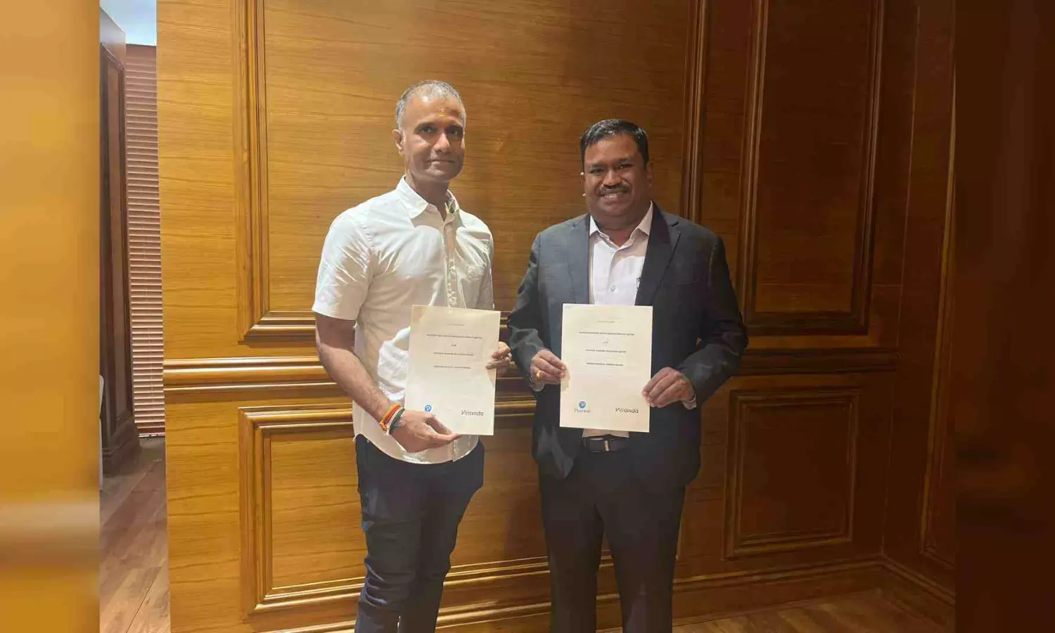 Mr. Suresh Kalpathi (left), executive director and chairman of Veranda Learning and Mr. Vinay Kumar Swamy, Country Head - India Pearson during the partnership announcement in Chennai