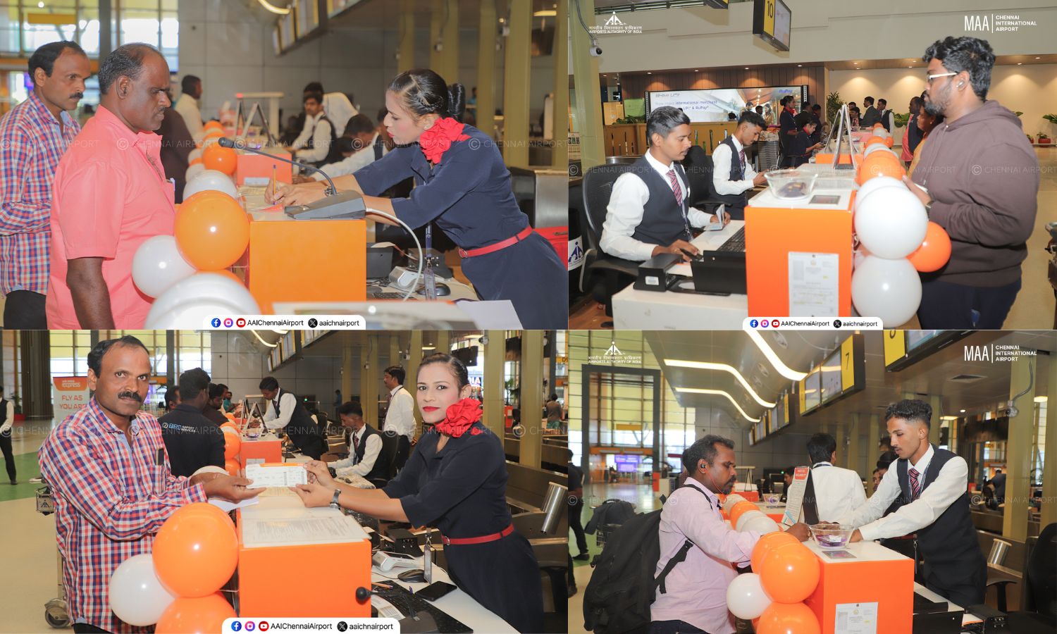 Snaps from the check-in area as Air India Express launches its twice-weekly service between Chennai and Muscat (X)