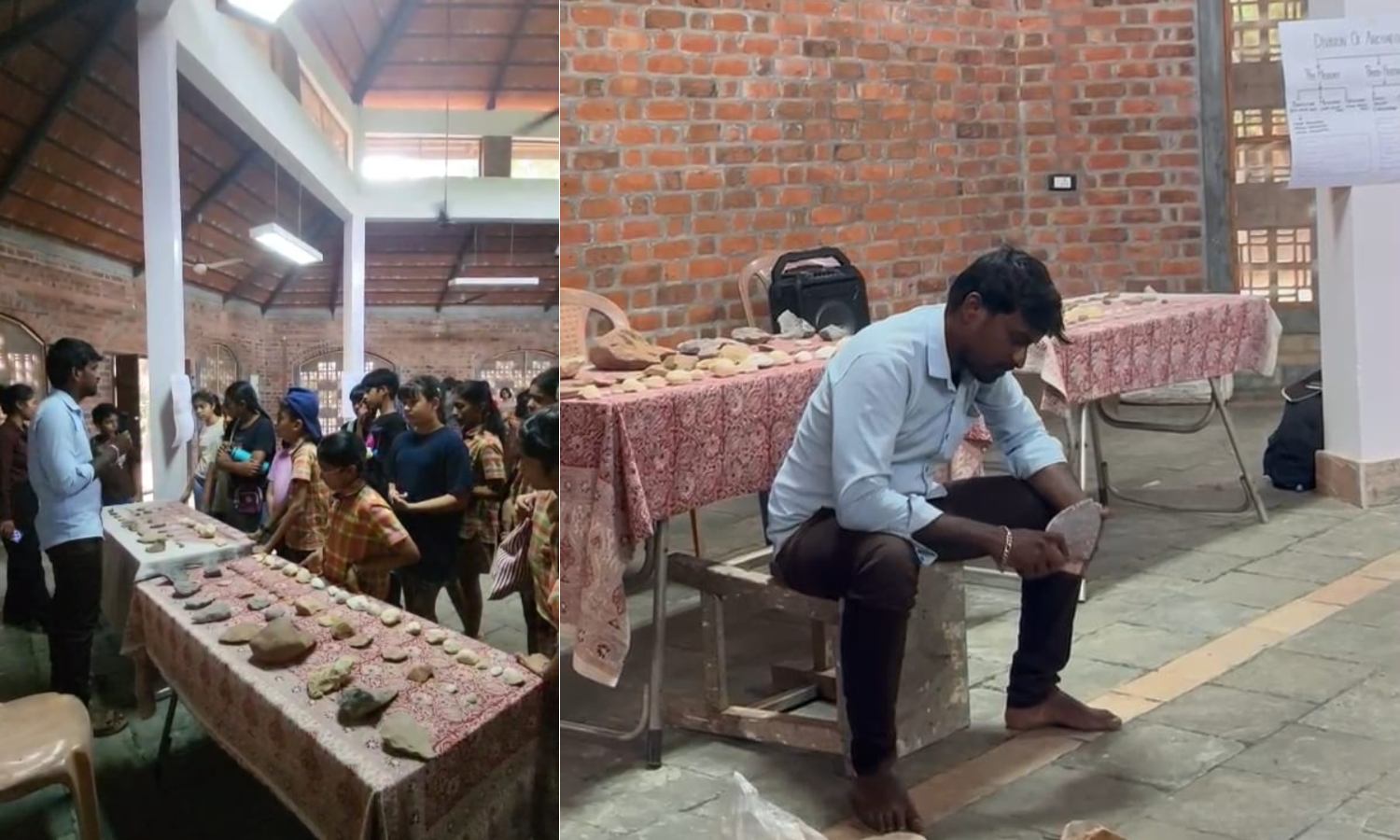 (L_R) Pic from the workshop, Anbazhagan K, an experimental archaeologist from the University of Madras