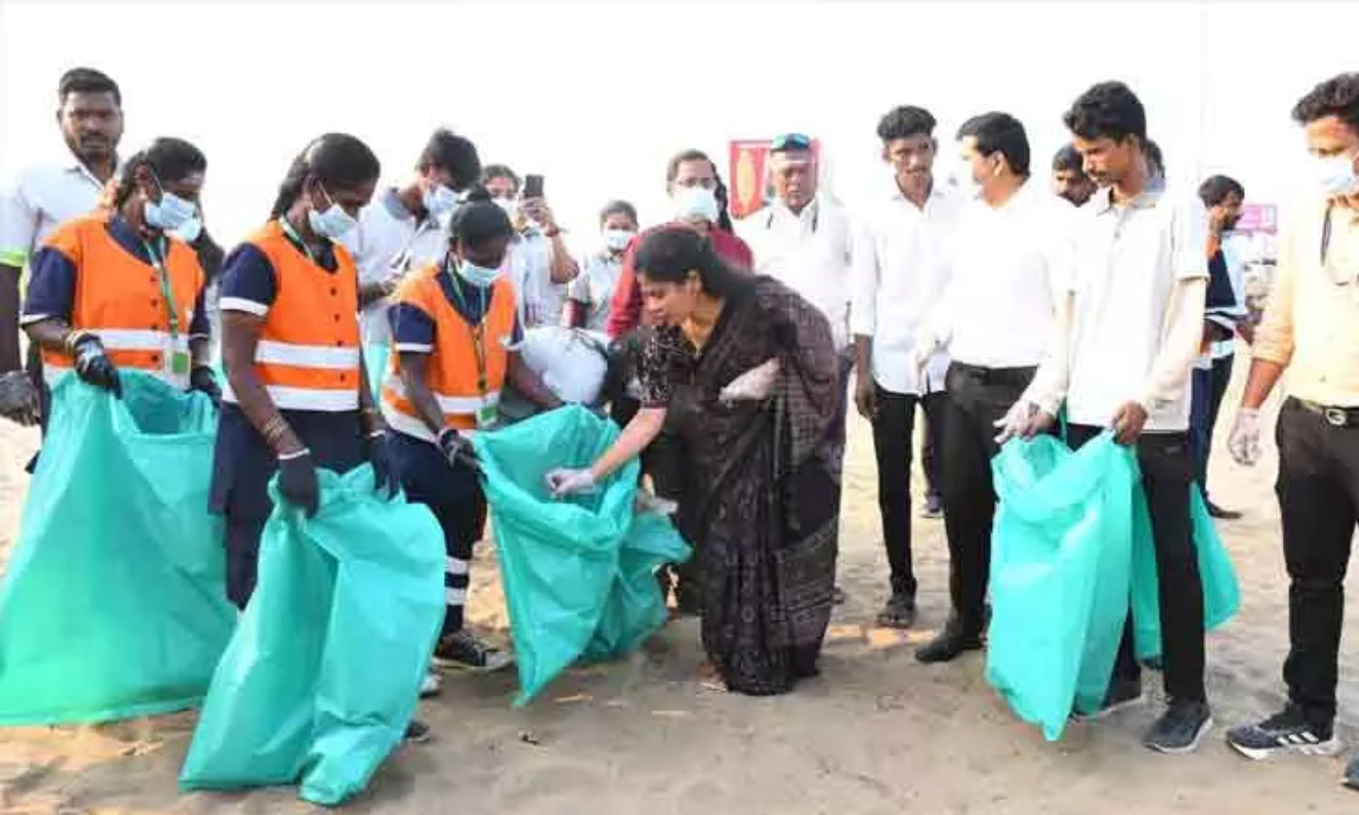 Mayor Priya launches Namma Chennai Namma Poruppu campaign at Marina Beach