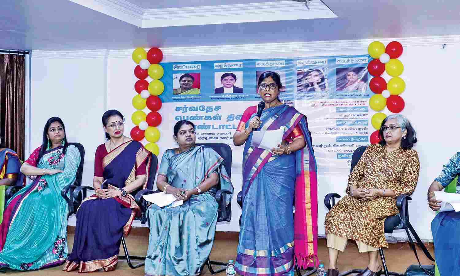 Various dignitaries at the Women’s Day event organised by journalists at the Chennai Press Club on Saturday