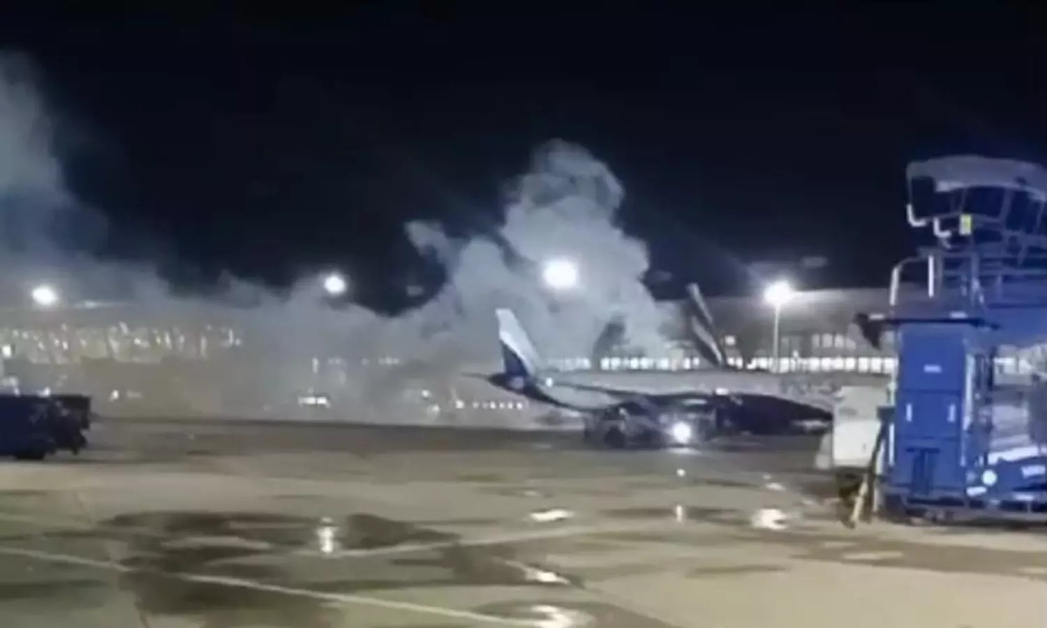 Visuals of smoke being emitted from the flight at Chennai Airport