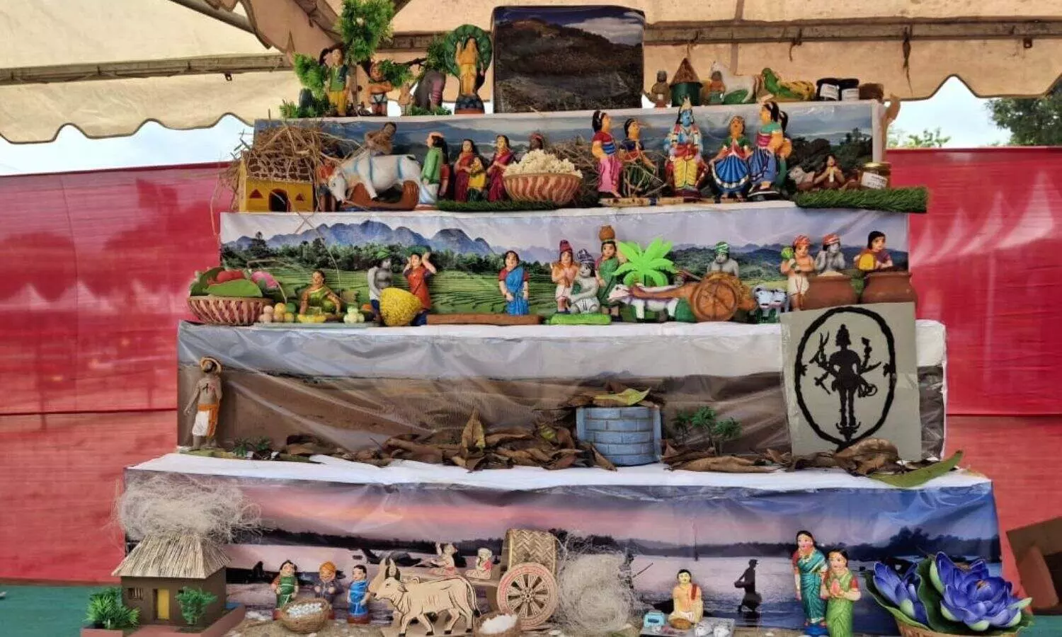 Thinai classifies the ecosystem into five categories: Kurini (mountain area), Mullai (forest land), Marutham (agricultural land), Paalai (desert land), and Neithal (seashore). This classification is known as ‘Ainthinai.’ “In the Ainthinai Golu, we created five steps to showcase these landscapes, as mentioned in ancient Tamil texts from the Sangam period. Each step featured dolls and items representative of that particular landscape. I especially wanted to include the ancient Tamil goddess Kotravai, considered the deity of the desert, but since I couldn't find one, I made a representation myself. I believe that this Golu setup offers a vivid visualisation of the landscapes for visitors, making the concepts from the texts more accessible. Presenting literature in this format can be particularly engaging for students and young people,” says Meenakshi.