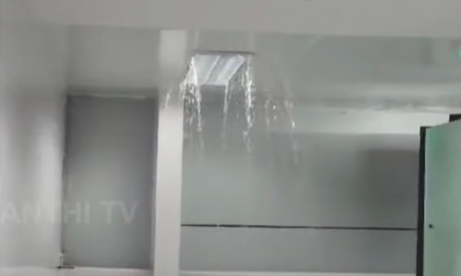 WATCH: Video shows rainwater gushing out of ceiling light fixture at Chennai airport