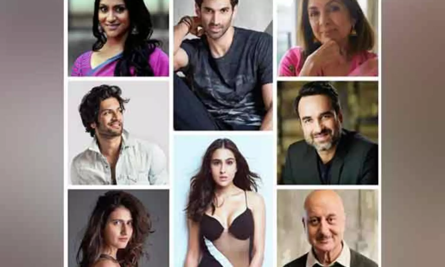 Aditya, Sara, Konkona, Neena Gupta, Ali Fazal, Pankaj Tripathi, Fatima, Anupam Kher (Photo: ANI)