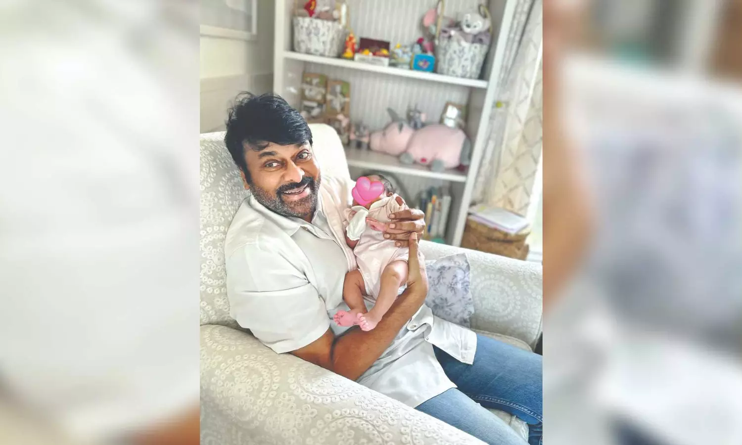 Chiranjeevi smiles holding newborn granddaughter on bday