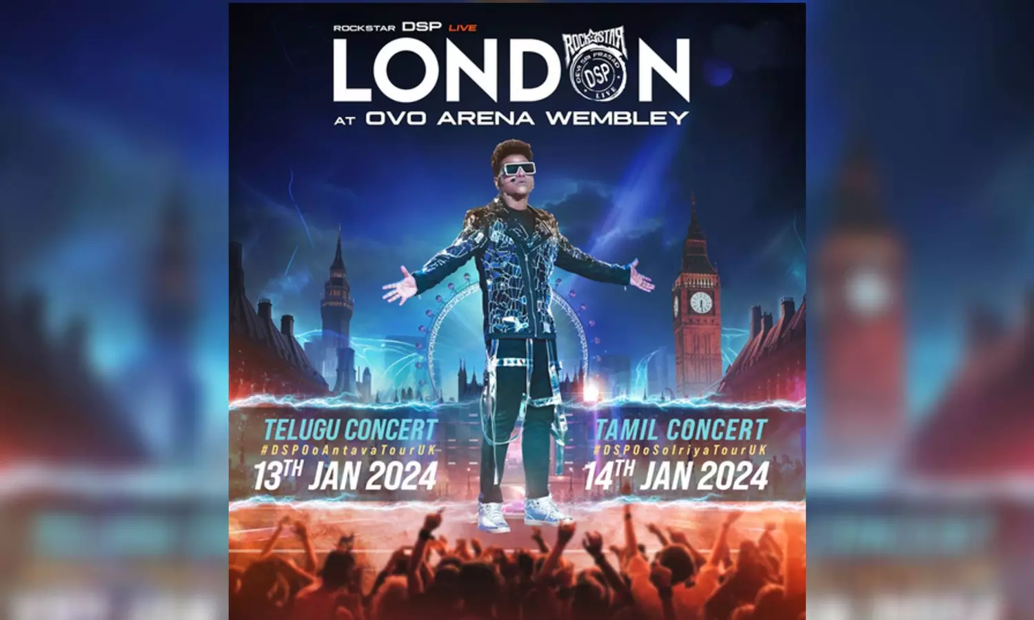 Following his unforgettable 'Oo Solriya' in Malaysia and 'Oo Anta Va' in the US, Devi Sri Prasad, popularly known as Rockstar DSP, will grace the stage in London for two days of electrifying performances.