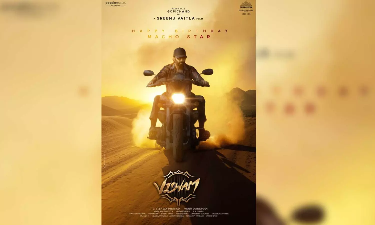 Sharing the poster on X, makers wrote, “Here’s Presenting the Machoness of @YoursGopichand in an uber stylish avatar from World of #Viswam. A @SreenuVaitla’s “Action Packed Entertainment” LOADING.. (sic).”