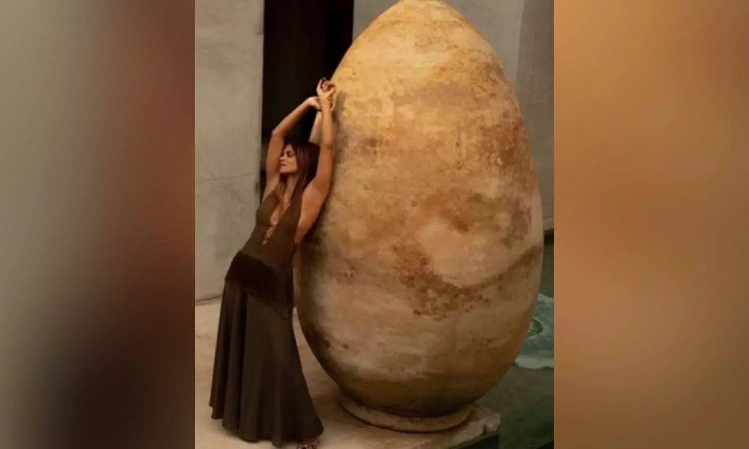However, some of her followers were distracted by the large, egg-shaped ornament she was posing against in the photo. "Gorgeous even when leaning against a giant potato," one quipped.