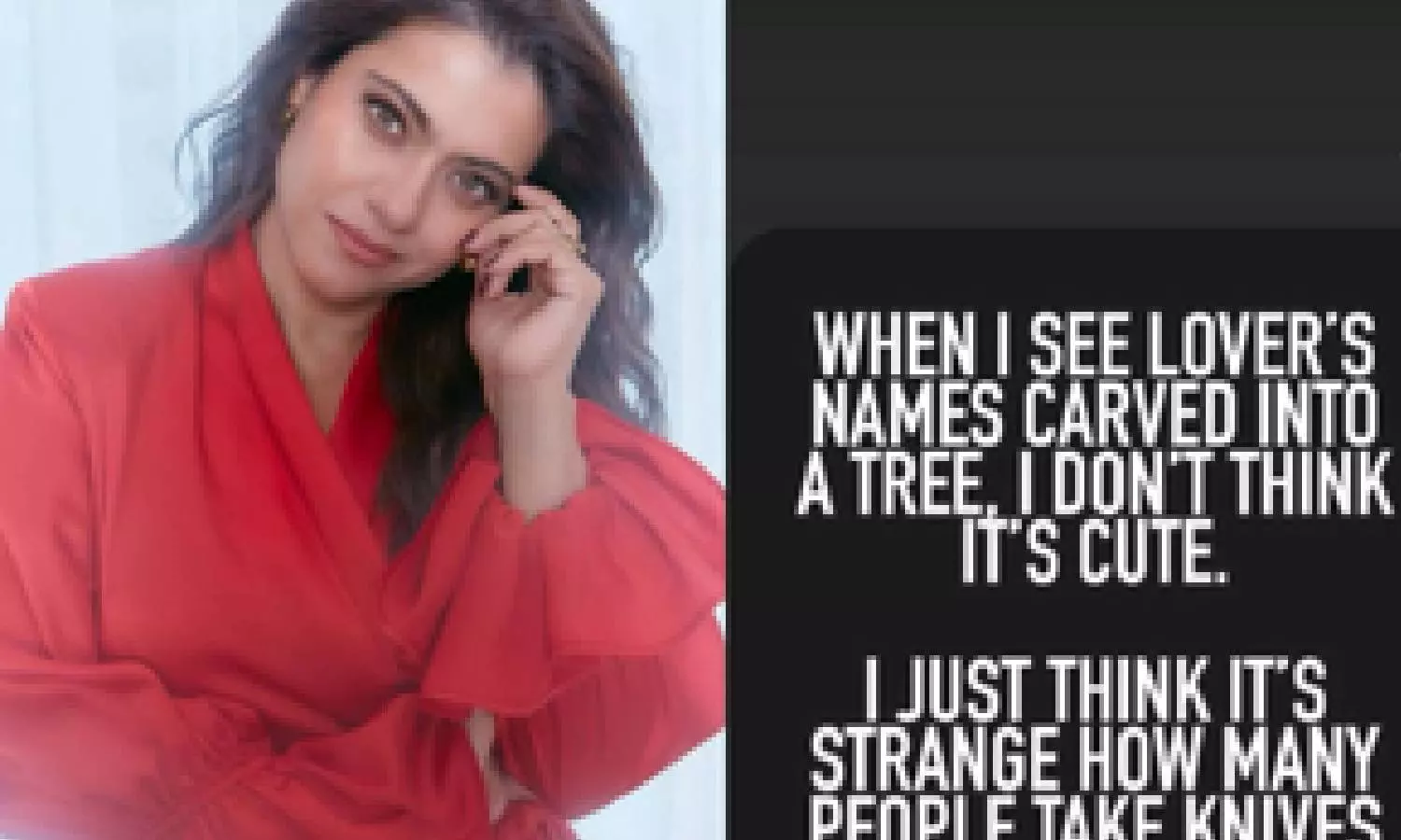 Kajol reacts to lovers carving names on trees, wonders how many 'carry knives on a date'