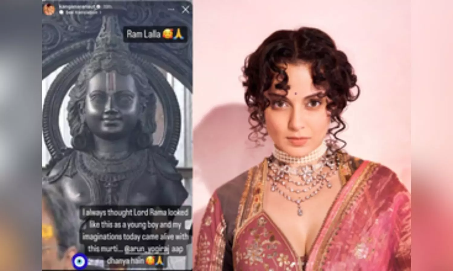 Sharing a picture of the Ram Lalla idol, Kangana wrote: “I always thought Lord Rama looked like this as a young boy and my imaginations today came alive with this murti... @arun_yogiral aap dhanya hain.”