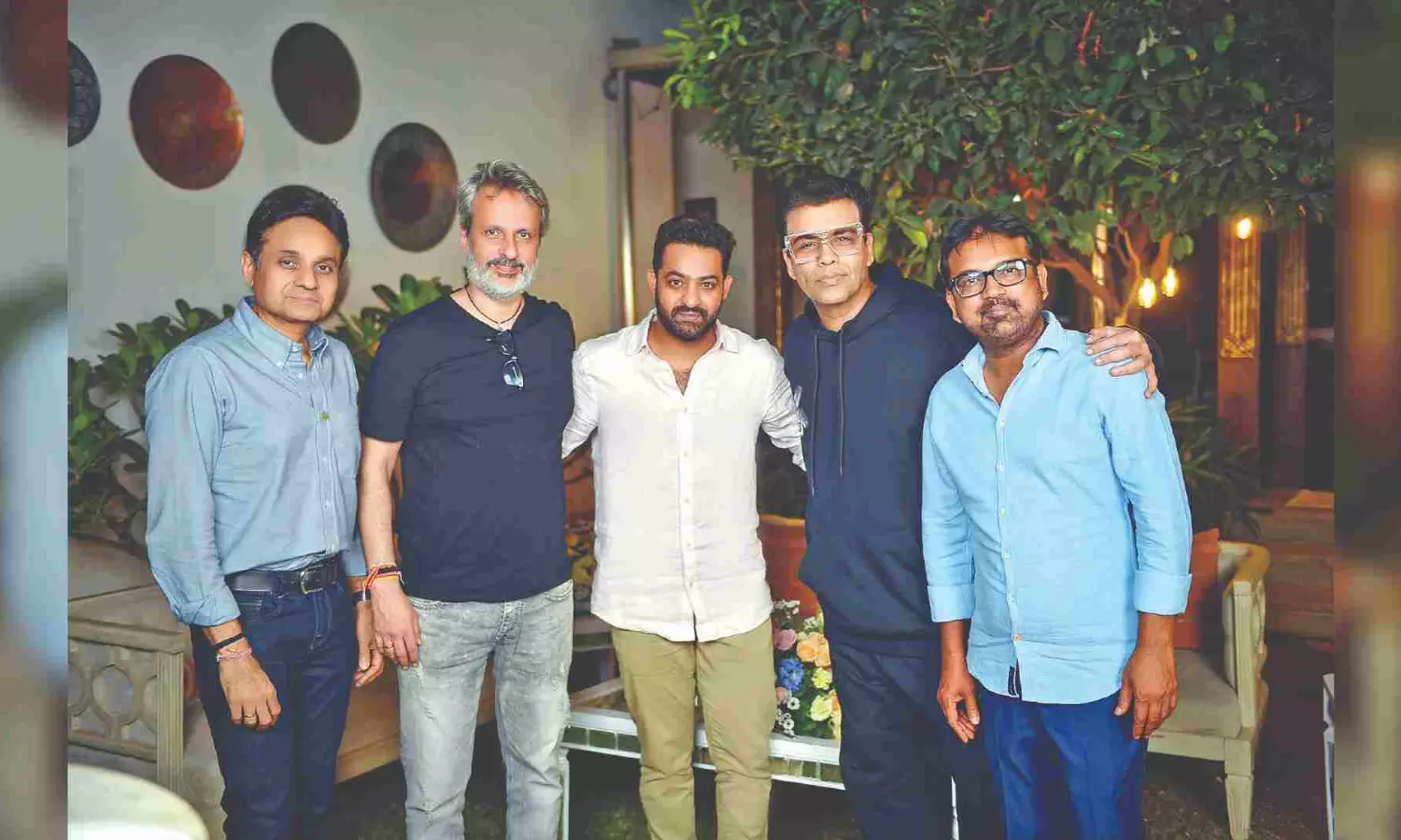 KJo took to his Instagram on Wednesday, and shared the film’s poster, and a picture with Koratala Siva, NTR Jr., Anil Thadani and Apoorva Mehta.