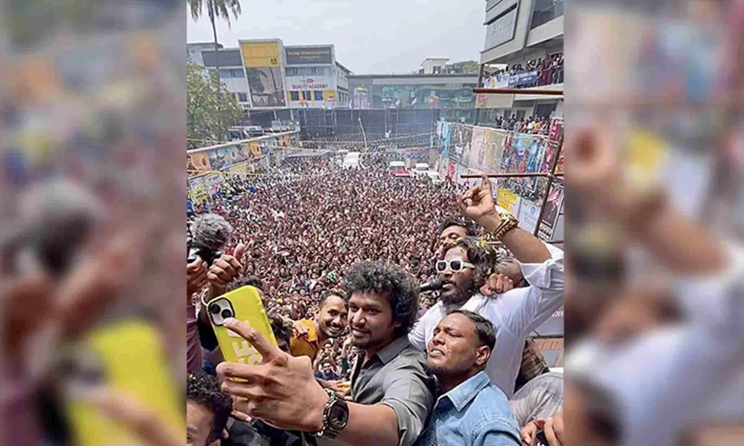 PALAKKAD: Director Lokesh Kanagaraj on Tuesday suffered a minor injury amid the crowd during the promotions of his recently released action film 'Leo' at the Aroma Theatre in Palakkad, Kerala. A large number of people were gathered outside the theatre to see him in Palakkad.