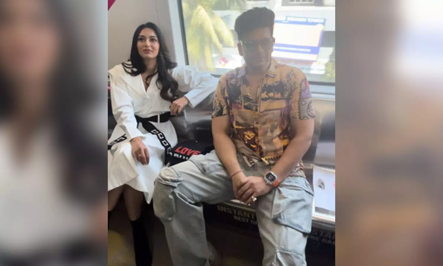 MUMBAI: Actors Karan Kundrra and Erica Fernandes, who have shared the screen in the romantic thriller 'Love Adhura', on Wednesday, were spotted travelling in a metro train in Mumbai, as they were heading towards a fan meetup.