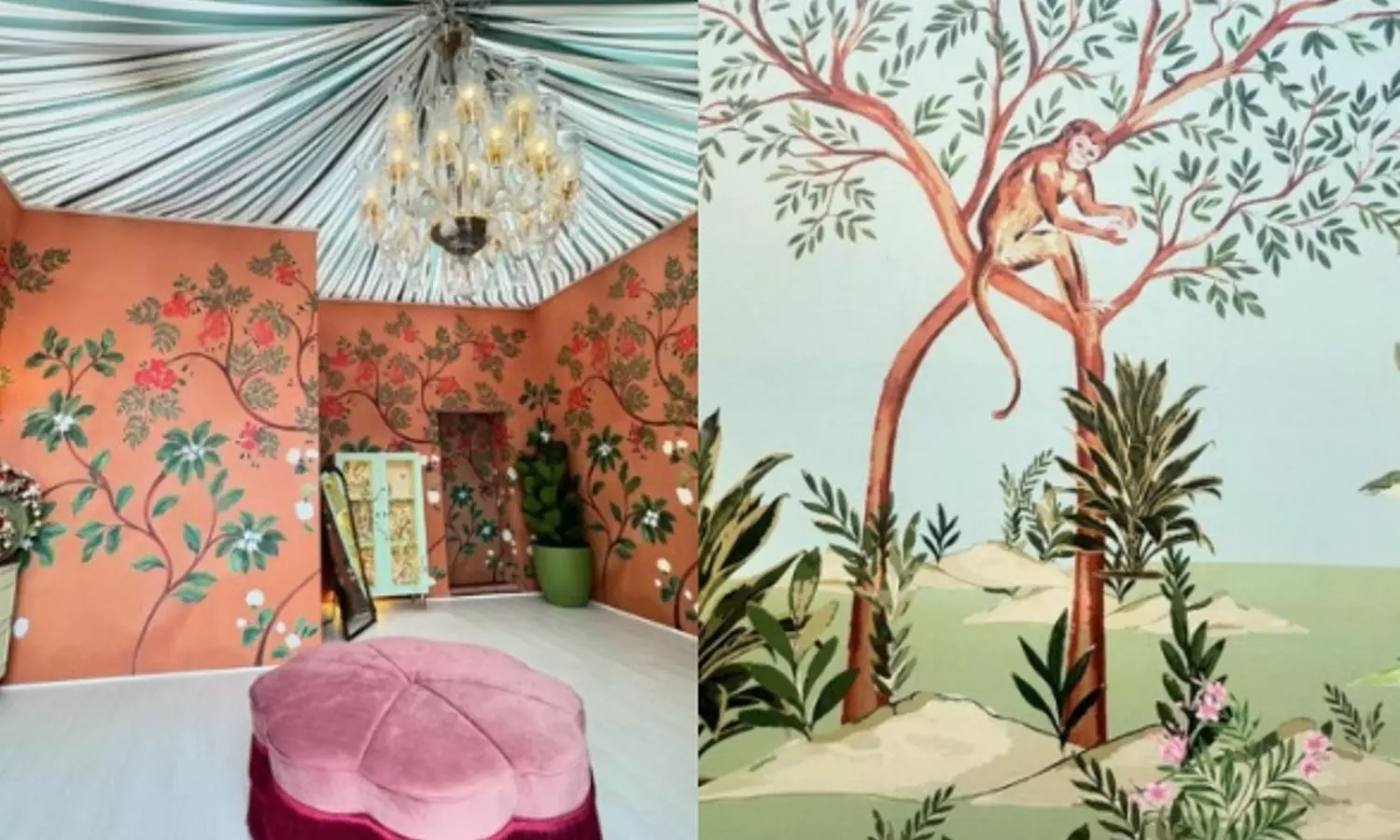 One of the pictures features elephant-shaped door handles while the walls could be seen adorned with hand-painted peacocks and monkeys. All other rooms at the venue are designed with floral patterns.