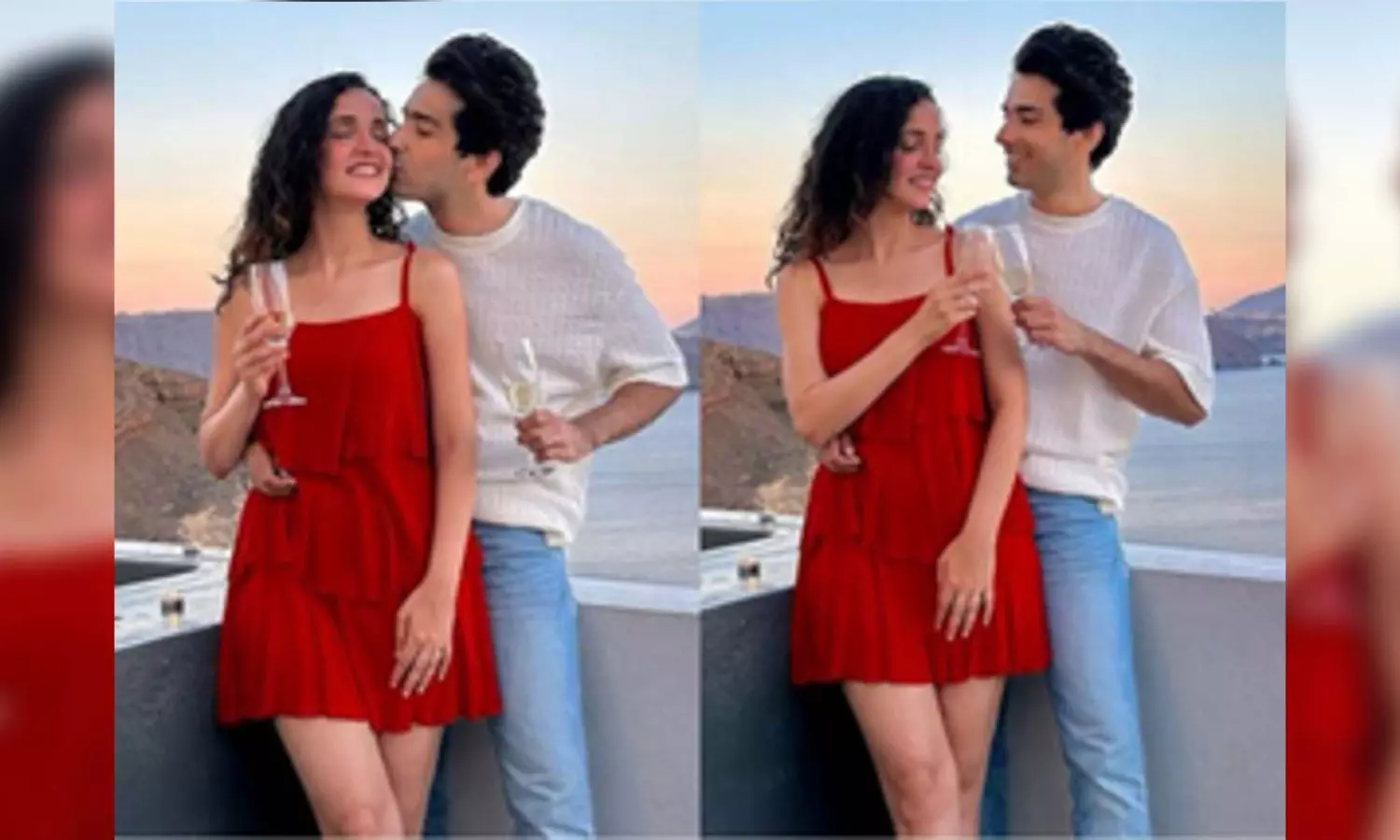 The photos that were shared on the social media by the actors, features Sanaya in a red sleeveless short dress, with her hair styled in beautiful curls.