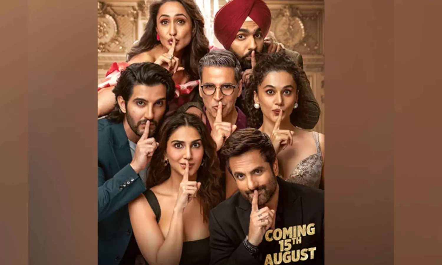 The poster features the film's stellar cast including Akshay Kumar, Taapsee Pannu, Fardeen Khan, Vaani Kapoor, Ammy Virk, Aditya Seal and Pragya Jaiswal happily posing together.