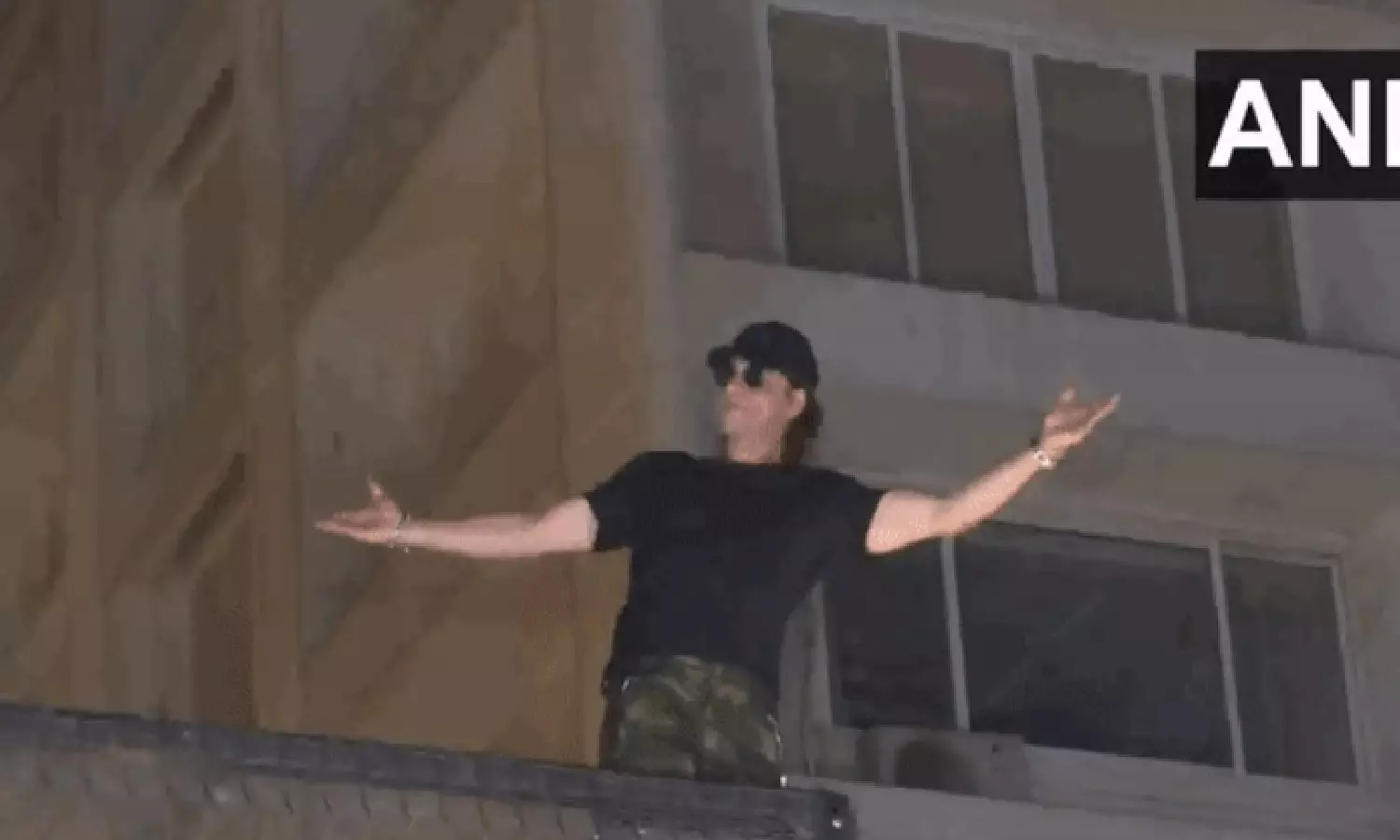The 'Pathaan' actor appeared on the balcony of his Mumbai bungalow and waved at his fans, who were left enthralled while cheering at the sight of the superstar.