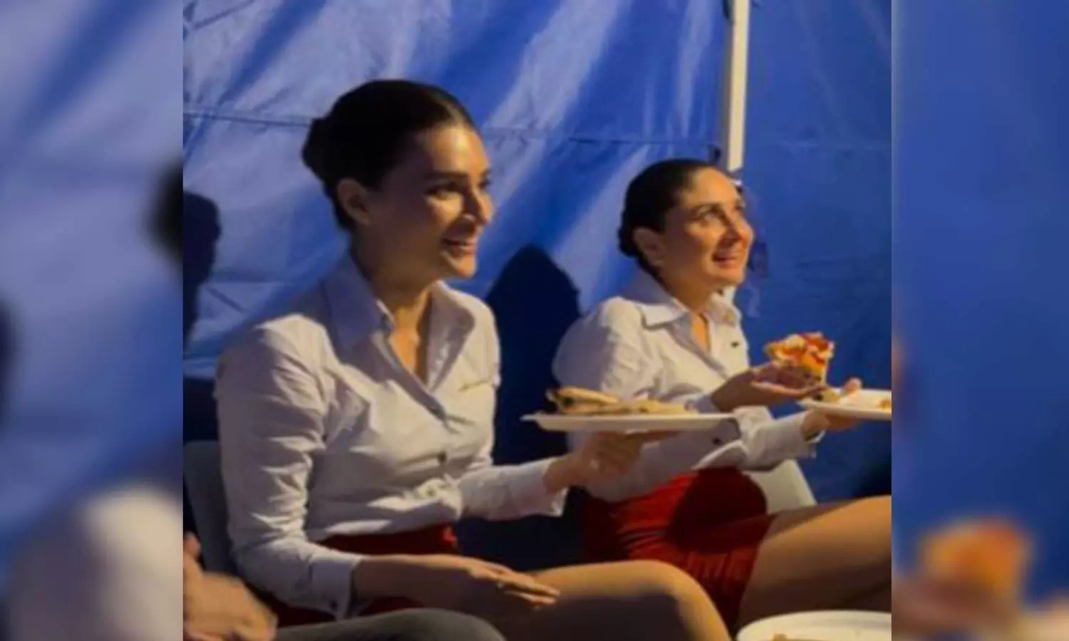 MUMBAI: As the makers gear up for the much-awaited film 'Crew,' producer-stylist Rhea Kapoor dropped a fun video featuring Kareena and Kriti. Rhea on Saturday took to her Instagram to share a video of Kareena Kapoor Khan and Kriti Sanon on the sets of their upcoming film. In the video, the two can be seen enjoying a pizza party on the set.