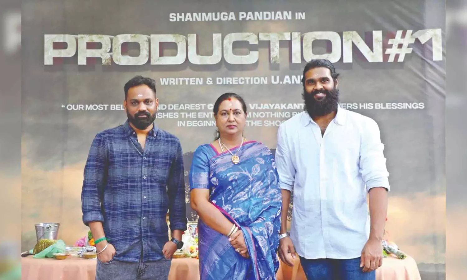 CHENNAI: The makers of actor Shanmuga Pandian’s next film has begun the shooting for the film on Sunday with a pooja. The ceremony was attended by Premalatha Vijayakanth.Written and directed by U Anbu of Walter and Rekla fame, the movie is tentatively titled as Production #1.