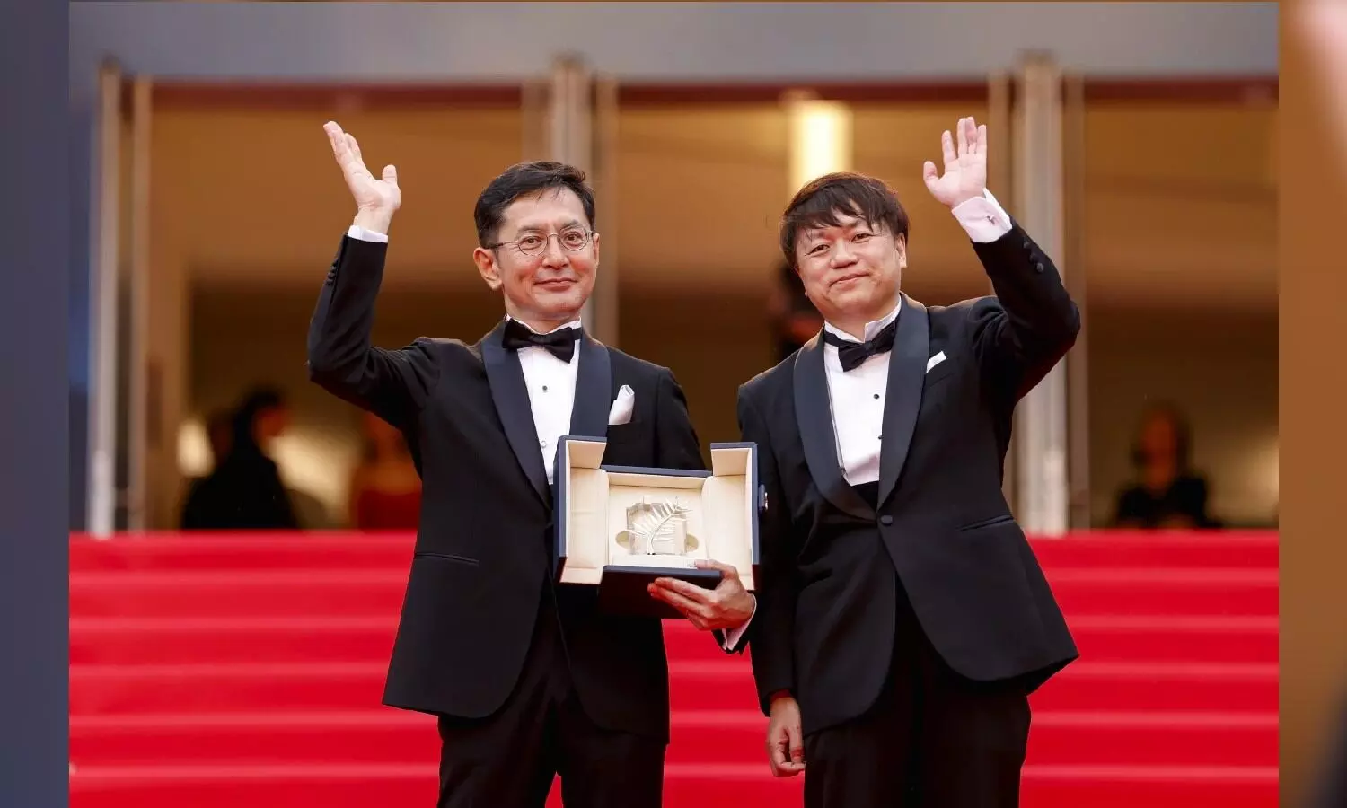 Goro Miyazaki and Kenichi Yoda with Studio Ghibli honorary Palme d’Or (Photo: AP)