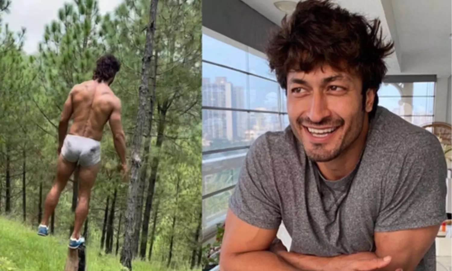 Vidyut is wearing boxers and shoes, and is performing the balancing exercise in the middle of a forest. He is flaunting his toned physique too.