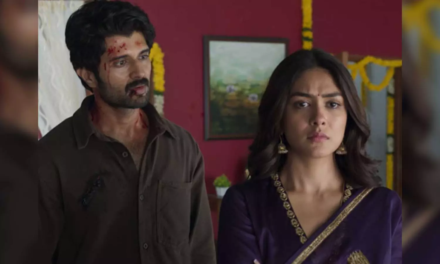 The trailer starts with Vijay praying to God, hoping for no losses in his life and only gains. Mrunal appears as his neighbor, close to his family, which bothers him. While she develops feelings for him first, the story shifts to the US, where he works under her. However, tensions arise when Mrunal believes she is causing problems in his life, leading to her angrily slapping him, as shown in the trailer.